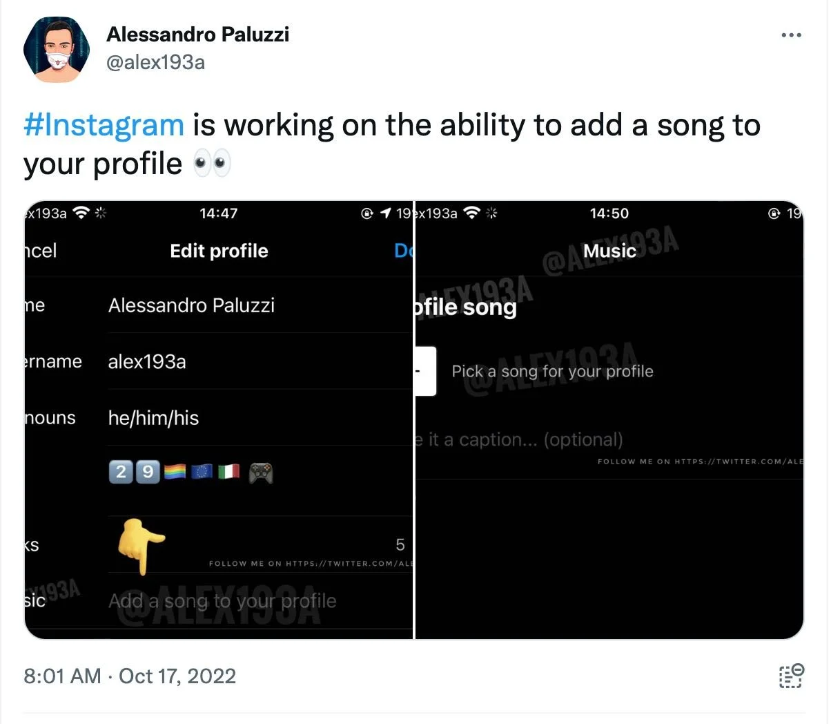Instagram users are reporting that you’ll be able to add music to your profile. Hootesuite shared that Tech Leaker, Allessandro Paluzzi, tweeted, “Instagram is working on the ability to add a song to your profile.”